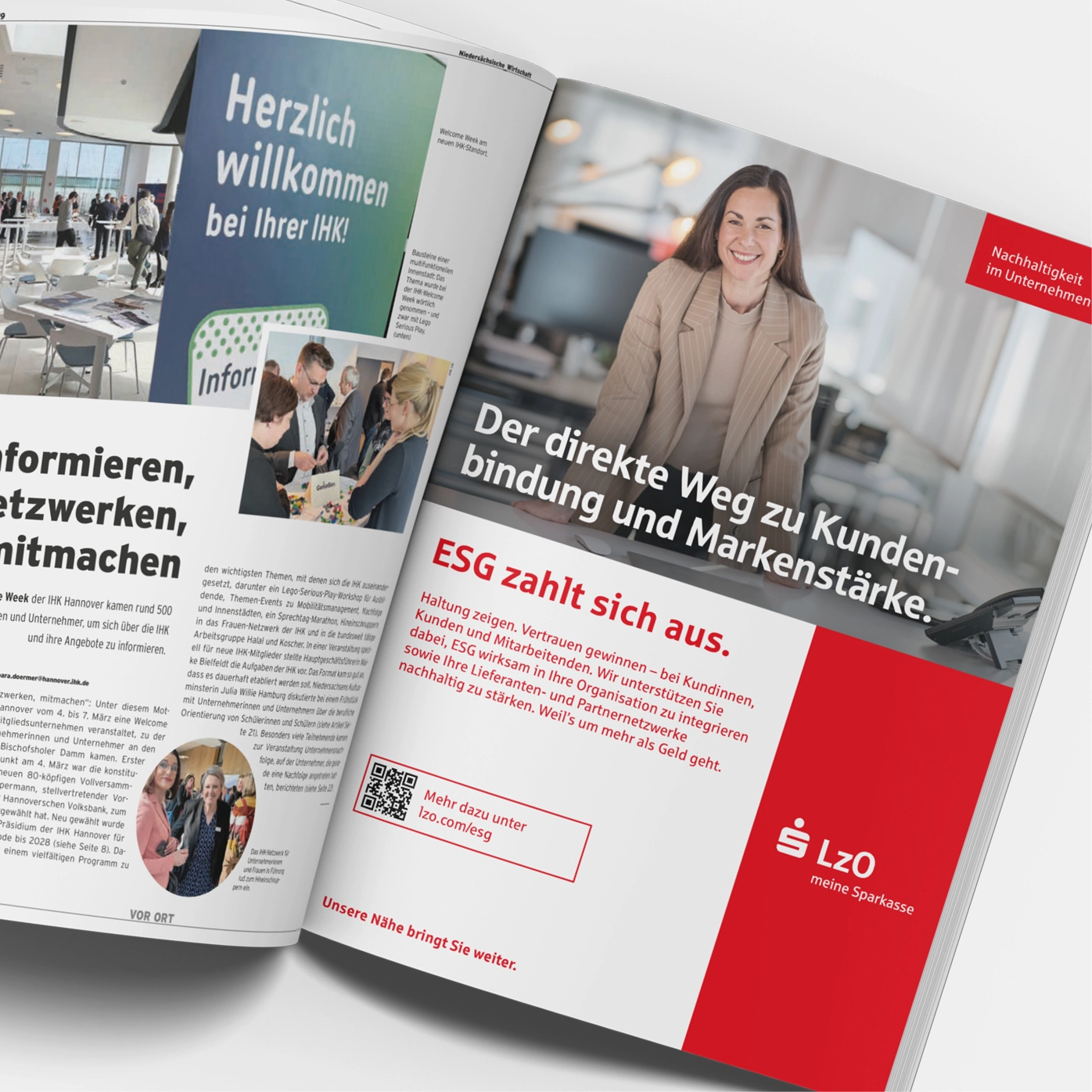Wir beraten, begleiten und realisieren die strategische Positionierung des Firmenkundenbereichs der Landessparkasse zu Oldenburg (LzO). Ein Schwerpunkt liegt auf der ESG-Kommunikation (Environmental, Social, Governance) sowie der persönlichen Präsentation des Firmenkundenteams. Ziel ist es, Nachhaltigkeit als festen Bestandteil der Unternehmensstrategie erlebbar zu machen und Firmenkunden in der Region lösungsorientiert und menschlich zu begegnen. Auf diese Weise verknüpfen wir strategische Inhalte mit einer Kommunikation, die persönlich berührt und motiviert.