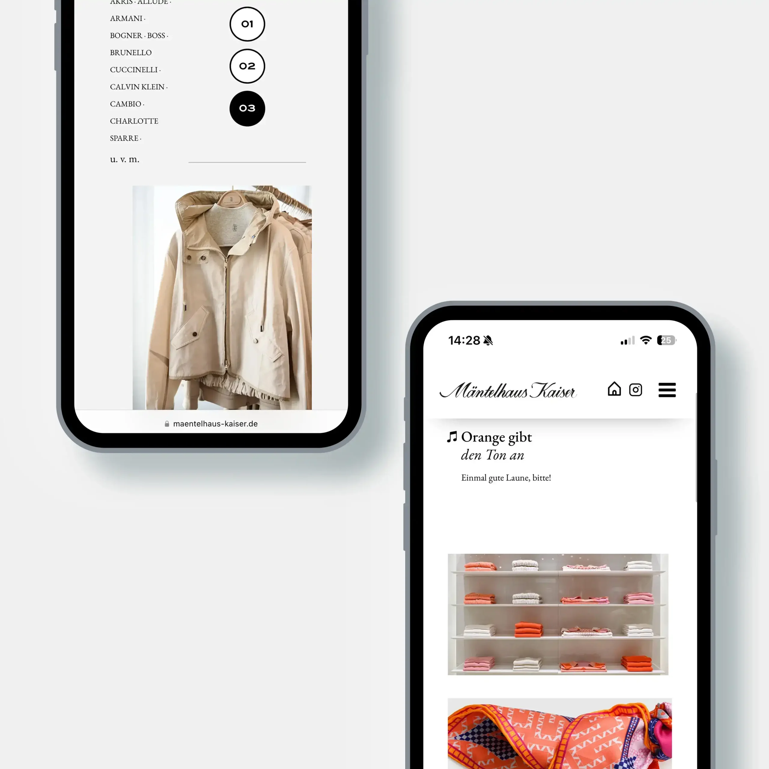 Das Ergebnis ist eine nahtlose Verbindung von stationärem und digitalem Auftritt, die den exklusiven Charakter von Mäntelhaus Kaiser unterstreicht. Gleichzeitig spricht sie neue Zielgruppen an und begeistert langjährige Kunden.