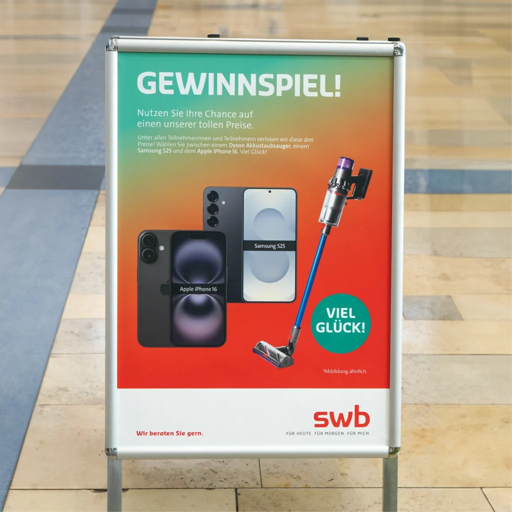 Mit der erfolgreichen Umsetzung der mobilen swb-Kundencenter-Tour schaffen wir für unseren Kunden eine starke Präsenz direkt vor Ort und stärken die Kundenbindung durch persönliche Beratung, Serviceorientierung und interaktive Erlebniselemente. Zudem betreuen wir die digitale Ausstattung der stationären Kundencenter vor Ort sowie weitere Messeauftritte, um die swb über alle Kanäle hinweg sichtbar und erlebbar zu machen.